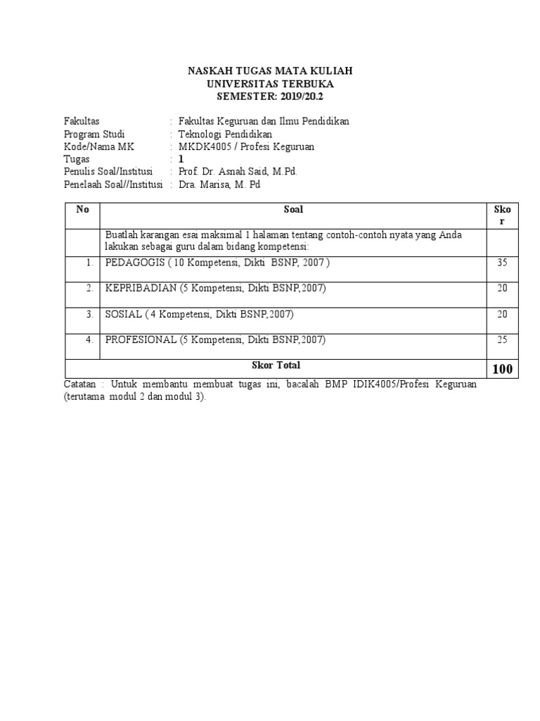 Soal profesi keguruan (mkdk4005) dan pembahasan.