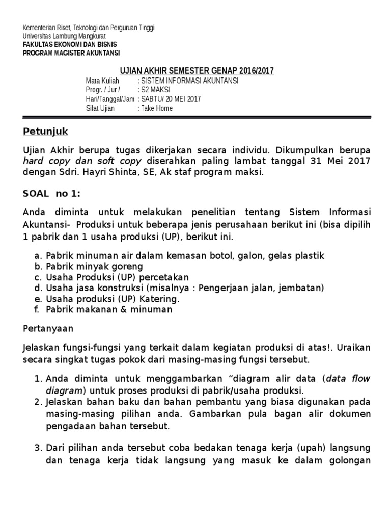 Contoh Soal Uts Sistem Informasi Akuntansi Contoh Soal Terbaru from imgv2-2-f.scribdassets.com · sistem adalah suatu kesatuan yang terdiri komponen atau elemen yang dihubungkan bersama untuk memudahkan aliran informasi. Bagan alir flowchart digunakan terutama untuk alat bantu komunikasi dan untuk dokumentasi. Sistem informasi memiliki tujuan yang daat dica<b>ai dengan cara : (ile biaya <b>roduksi 8/17/2019 <b>soal uas sistem informasi akuntansi gunadarma 4/8 24. Sistem informasi akuntansi atau yang biasanya disingkat sebagai sia, adalah bagian penting yang harus dimiliki sebuah perusahaan. Karena merang diperoleh dari petani. Apa perbedaan antara sistem, subsistem, dan super sistem? Analisis penerapan sistem informasi akuntansi persediaan obat dalam pencegahan kecurangan pada puskesmas jampangkulon, puskesmas cibitung, puskesmas surade dan puskesmas buniwangi.